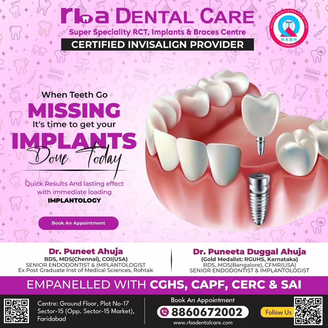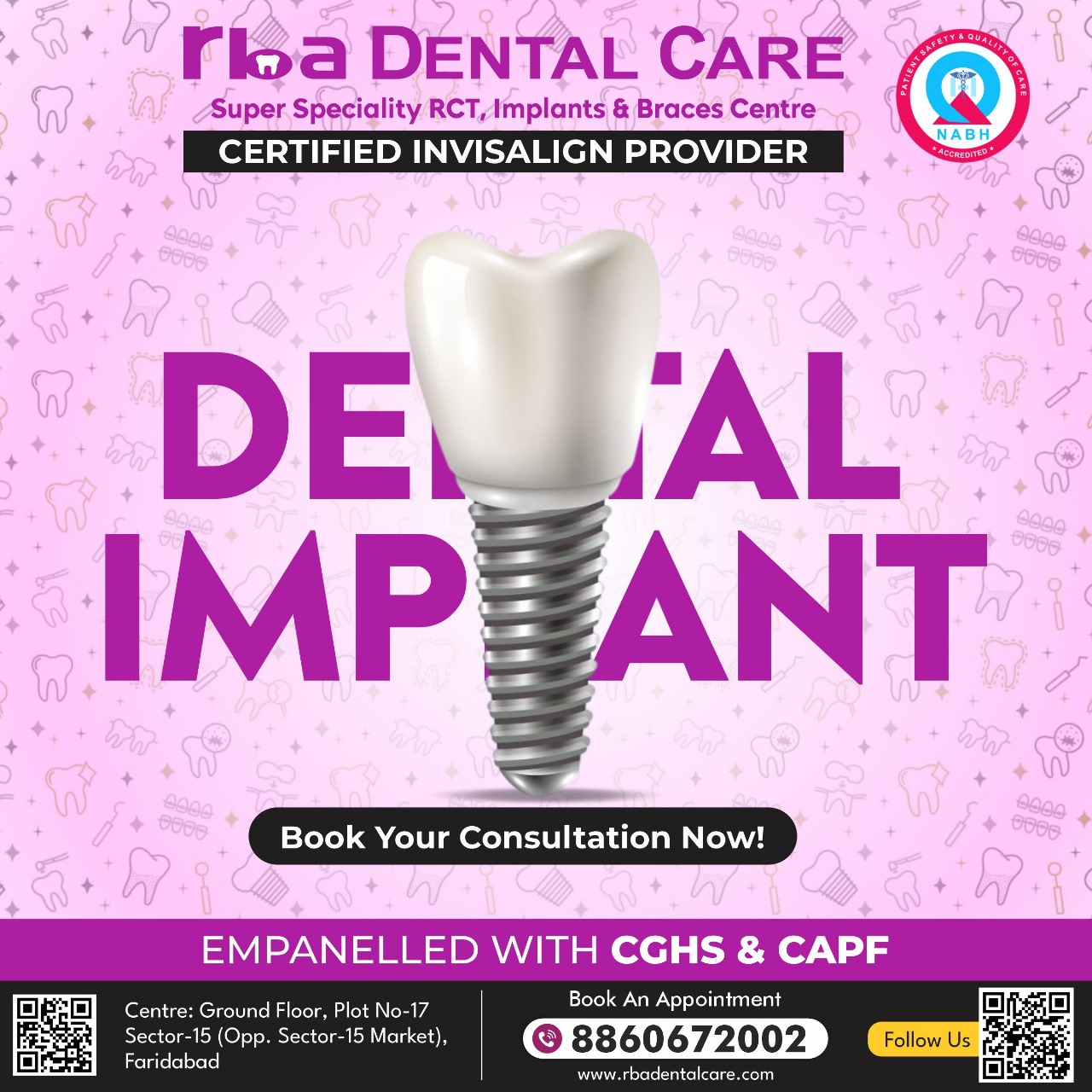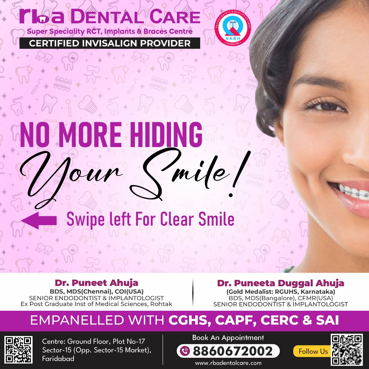 Rba Dental Care is the biggest and best Super Specialized Centre, providing High Quality Microscopic, Laser, Root Canal Treatment and life time warranty implants in Faridabad and Delhi NCR.
