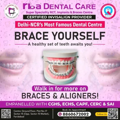 At RBA Dental Care, experience exceptional oral care by our expert dentists. We offer a wide range of services, from routine check-ups to cosmetic and restorative procedures. Trust us for the best dental treatments in Faridabad, including root canal, dental implants, braces, and more. Schedule your appointment today for a healthy, beautiful smile!