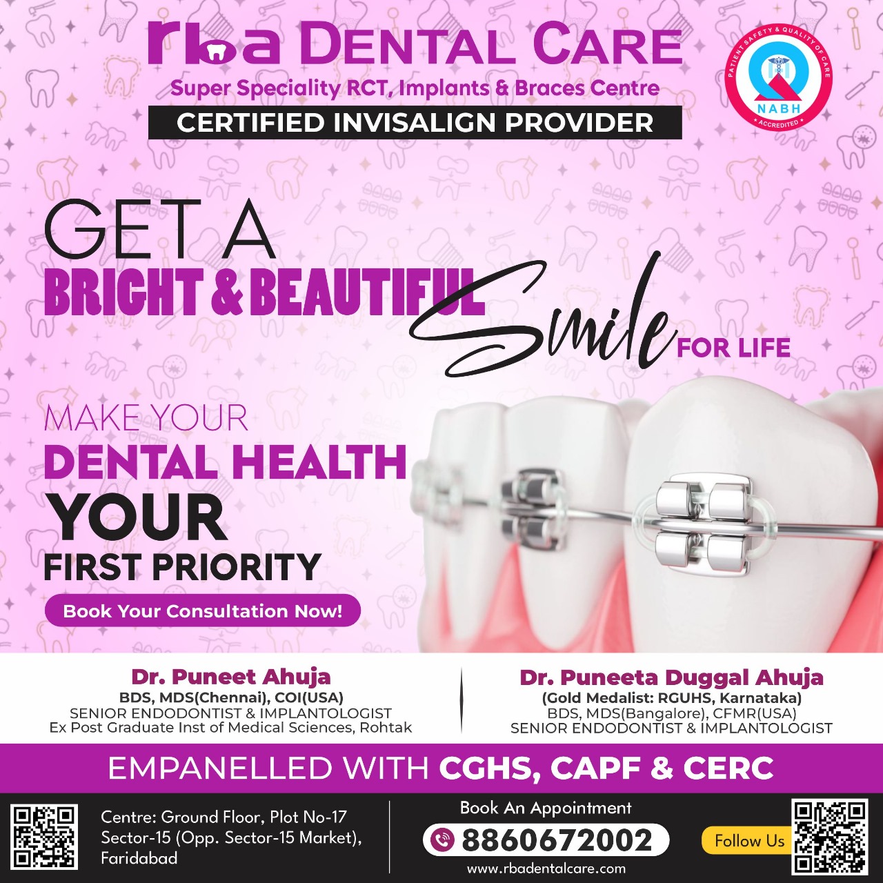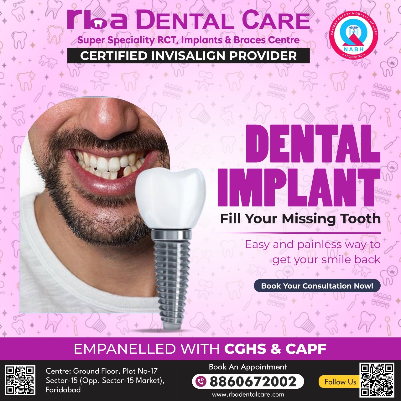 Rba Dental Care is the biggest and best Super Specialized Centre, providing High Quality Microscopic, Laser, Root Canal Treatment and life time warranty implants in Faridabad and Delhi NCR.